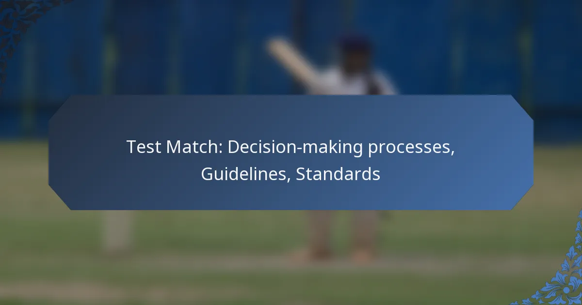 Key decision-making processes in test matches involve strategic choices made by the captain, coaching staff, and players based on performance data and situational factors. These decisions can significantly impact the match outcome and require careful consideration of various elements.